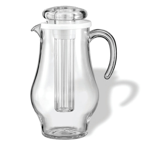 Water Pitcher, 2.4 liter (81.1 oz.), 6-1/4" x 7-1/2" x 11-1/2", with ice tube, bell shaped, hand wash, BPA free, SAN plastic, clear (Priced per each, packed 6 each per case)