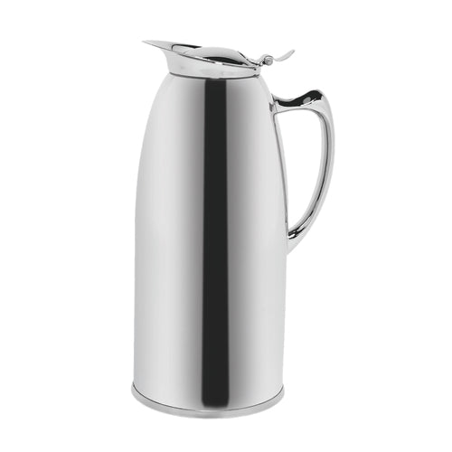 Pitcher, 2 liter (67.6 oz.), 5-1/4" x 6-3/4" x 10-3/4", retention: 2-3 hours, flip top lid, hand wash (do not submerge), double wall, foam insulation, 18/8 stainless steel, chrome finish (to be discontinued, contact factory for availability) (Priced per each, packed 8 each per case)