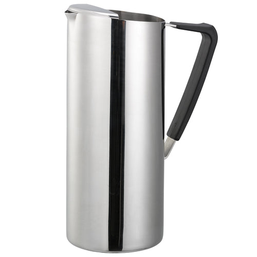 Water Pitcher, slim profile, 1.6 liter (54 oz), 7" x 4 x 9-3/4", double wall, with ice guard, rubber molded handle, dishwasher safe, 18/8 stainless steel, plished finish, NSF (Priced per each, packed 12 each per case)