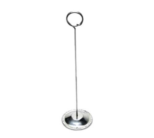 Card Holder, 2-5/8" dia. x 10"H, wire loop clip, weighted base, stainless steel, polished finish