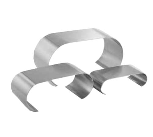 Riser Set, set of 3, contemporary design, curled ends, stainless steel, satin finish, includes: (1) 8-1/4"L x 4"W x 2"H, (1) 10-1/2" x 5-1/4"W x 4"H and (1) 12-1/2"L x 6"W x 6-1/2"H