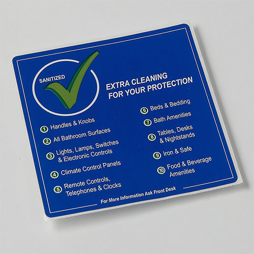 Sanitized Checklist Label, 4" x 4", lists 10 checklist items, blue (500 labels per roll)