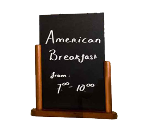 Securit® Table Top Board, 6"W x 9"H, double sided mahogany lacquered with removable blackboard