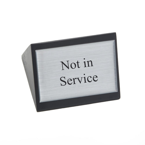 Not In Service Sign, triangular, 3"W x 1-3/4"H, double sided, wooden block, black with silver labels, Made in USA (hand wash only)