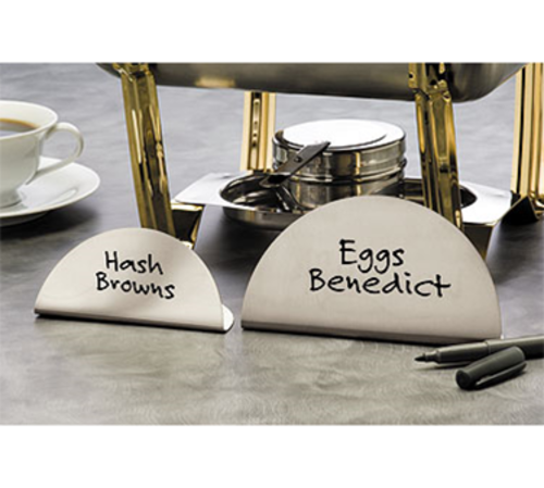 Menu Card Sign, 5"L x 2-1/2"W x 2-5/8"H, write on, wipe off, stainless steel