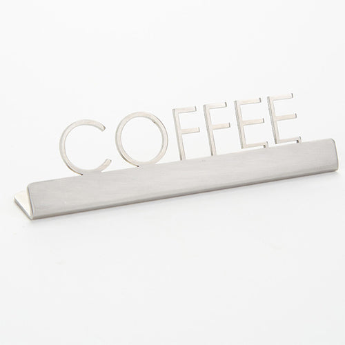 Sign, "coffee", 5"L x 3/4"W x 1-1/2"H, stainless steel