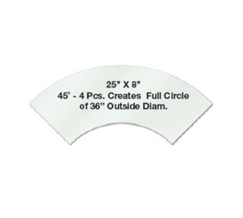 Riser Shelf, 25"L x 8"W, 3/8" thick, serpentine quarter circle, polished on all sides, tempered glass, clear