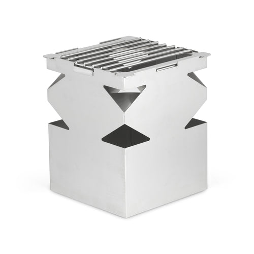 Lexus Solid Design Connecting Riser Stand, 8”W x 8”D x 10”H, integrates with L and X risers, Sterno clip-in shelf, for use as heated or cold riser, grate top, use 5"H cylinder with LED light model #1745C, 18/10 stainless steel