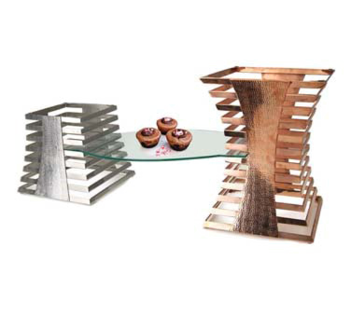 Escalate Riser, 10"W x 10"D x 6-1/2"H, 6-layer, includes removable grate and sterno holder, stainless steel (display shelves can be used between risers)
