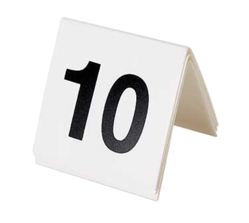 Table Tent, numbers 26 through 50, dishwasher safe, polypropylene, white with black number imprint