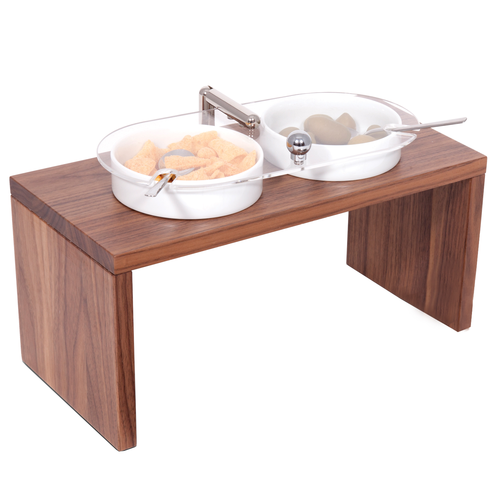 Ze Pe Buffet Risers, 14.25"D x 6.75"W x 9"H, high rise display, double bowl, walnut wood, rectangular, (contact factory for price)