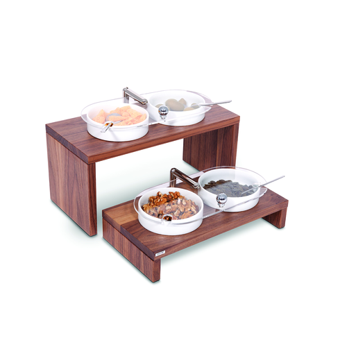Ze Pe Buffet Risers Set, 2 bowls(high & low),food safe, dishwasher safe, walnut, (contact factory for price)