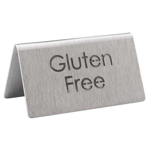 Beverage ID Tent, "Gluten Free", 1-1/2"H x 3"W, laser-cut, dishwasher safe (hand washing is recommended), 18/8 stainless steel, brushed finish, Made in USA (Priced per each, packed 6 each per case)