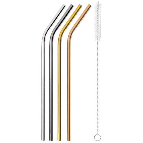 Straw Set, 8-1/2"L, curved, stainless steel, copper finish Paderno, Bar Supplies (12 each per set)