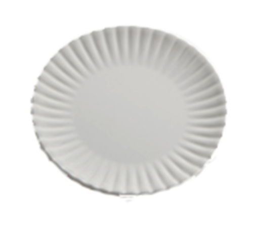Plate, 8-7/8" dia. x 5/8"H, round, paper plate design, melamine, white