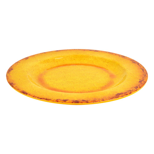 Casablanca Collection Plate, 11" dia. x 3/4"H, round, distressed crackle glaze look, chip and stain resistant, dishwasher safe, melamine, orange, Dalebrook
