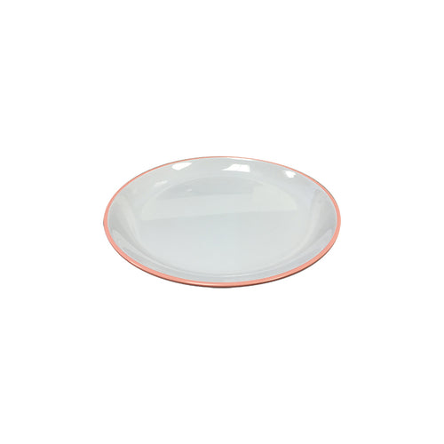 Settlement™ Oasis™ Side Plate, 7" dia., round, break-resistant, dishwasher safe, BPA Free, melamine, white with grapefruit pink trim, NSF