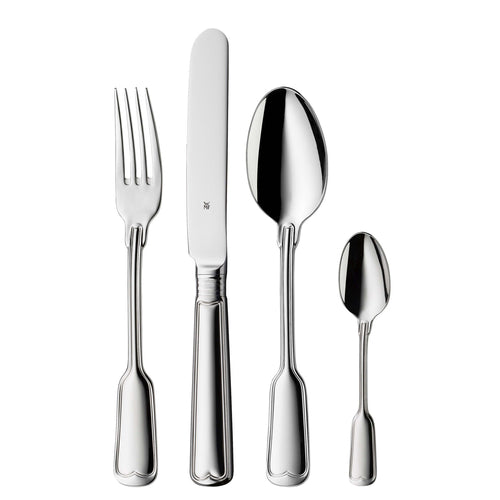 Flatware Place Set Kit, 3-piece, includes: (1) table fork (54.2002.6040), (1) table knife (54.2003.6049), (1) coffee/dessert spoon (54.2010.6040), 18/10 stainless steel, Triomphe by WMF (no charge)