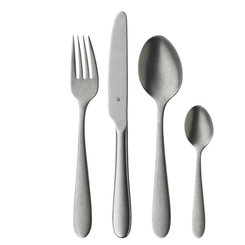 Flatware Place Set Kit, 5-piece, includes: (1) dessert fork (54.8205.6040), (1) table fork (54.8202.6040), (1) table knife (54.8203.6049), (1) dessert spoon (54.8204.6040), (1) coffee spoon (54.8210.6040), 18/10 stainless steel, Sara Stonewash by WMF (no charge)