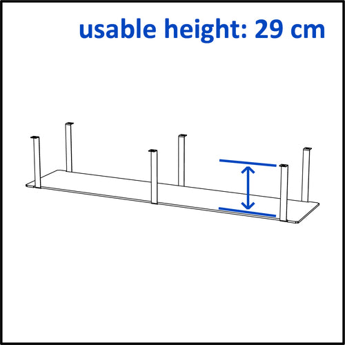 Venta® Shelf, to create storage space under a Buffet Table, STAGE_50_L, 3 x U-bolt in steel with powder-coating, shelf plate made in material compact laminate, usable height = 11,4", dimensions 74,8" x 16,9"