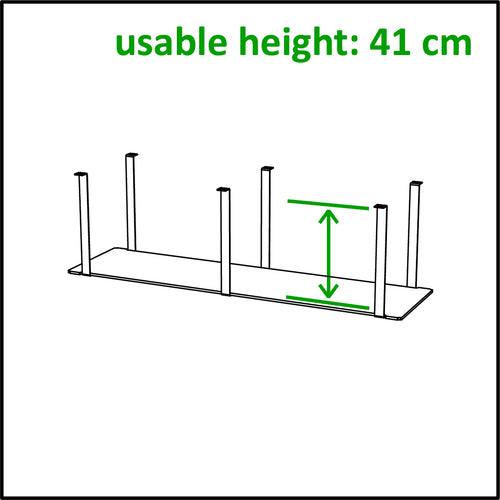 Venta® Shelf, to create storage space under a Buffet Table, STAGE_50_S_164, 3 x U-bolt in steel with powder-coating, shelf plate made in material compact laminate, usable height = 16,1", can be combined with FRONTBLIND_APERTURE_STAGE_S_164 (VE-38059), dimensions 62,2" x 16,9"