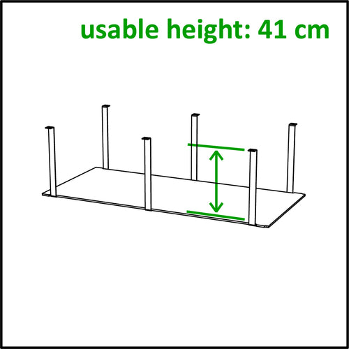 Venta® Shelf, to create storage space under a Buffet Table, STAGE_80_S_164, 3 x U-bolt in steel with powder-coating, shelf plate made in material compact laminate, usable height = 16,1", can be combined with FRONTBLIND_APERTURE_STAGE_S_164 (VE-38059), dimensions 62,2" x 28,7"