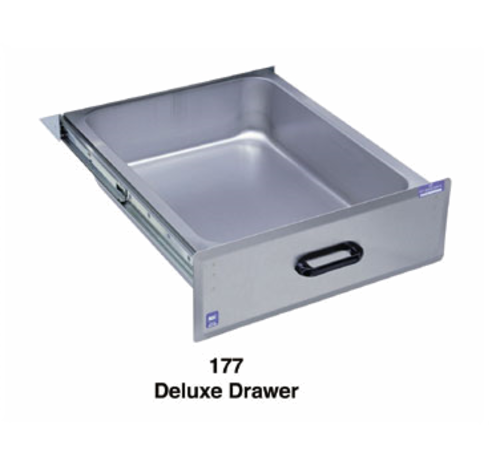 Deluxe Drawer, stainless steel front, with stainless steel liner, on ball-bearing roller slides, with lock & keys (when ordered separately, specify width of table), NSF