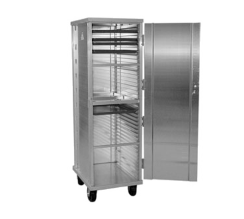 Lifetime Series Pan Rack, enclosed, 20-7/8" x 27-5/8" x 69"H, heavy duty, with slides for (38) pans, slides on 1-1/2" centers, includes prison package with (4) aluminum welded hinges, (4) 6" polyolefin casters, (2) padlock holes in door, extra interior bracing & tamper proof screws & bolts, NSF (FLYER)