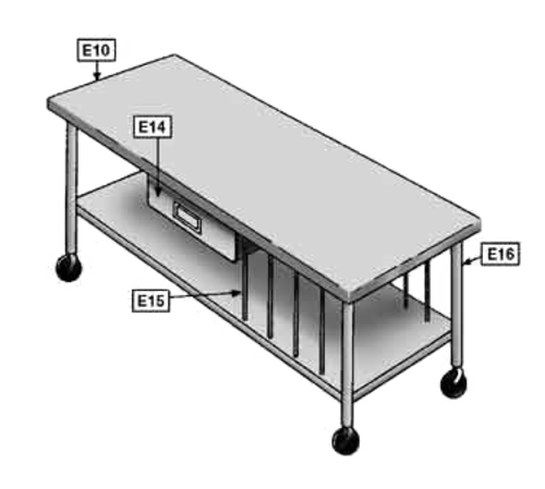 Square edge table, front and/or rear, per table