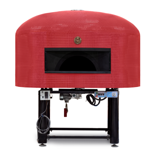Napoli Twister Rotary Oven, gas burning style, 51" dia. round brick hearth, 9-1/4"H steel arch opening, self-modulating gas burner, (10-12) 12" pizza capacity, imported Italian tile facade, white Carrara marble countertop, legs, 120v/60/1-ph, 1.2 amps (burner), 120v/60/1-ph, 7.0 amps (motor), 140,000 BTU, cETLus