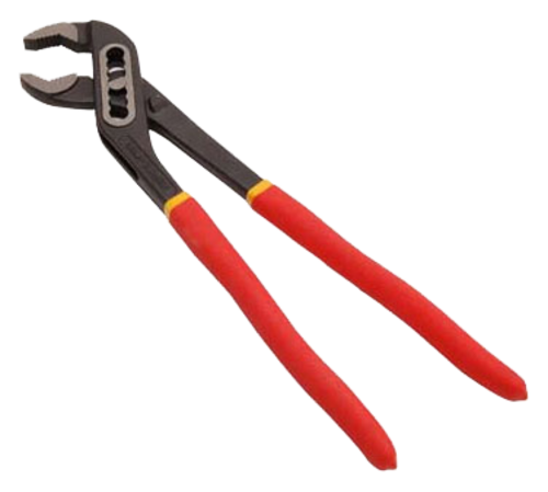Box Joint Pump Pliers, 12"L, seven position self-gripping jaw, chrome vanadium steel head with red rubber coated handles