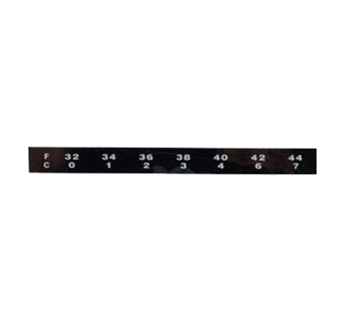 Thermometer, strip, 4"L x 3/8"W, 32° to 44° F temperature range