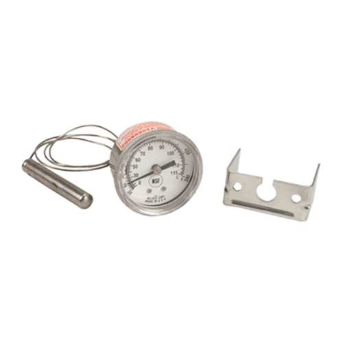 Thermometer, 24-1/2" capillary, 2-5/8"L, 2-1/4" dial, 3/8-27 thread, 30° to 240° F temperature range, 7/16" bulb, mounting bracket
