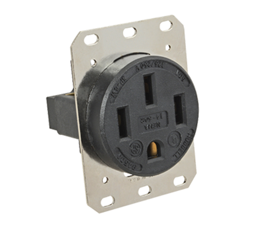 Receptacle, 3-3/4" H x 2-3/4" x 2-1/2", flush mount, black, 250v/60/3-ph, (Nema 14-50R)