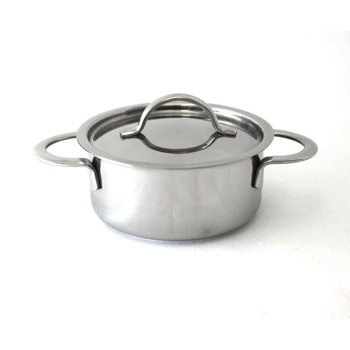 Mini Bistro Pot, 10 oz., 4-7/16" dia. x 2"H, 6-1/2"L with handles, with lid, stainless steel with mirror finish (to be discontinued, contact factory for availability)