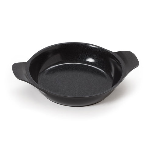 Heiss™ Mini Induction Pan, 10 oz. (10-3/4 oz. rim full), 5-3/4" dia. x 1-1/4"H, round, heat resistant to 500°F, oven/induction/gas/electric/open flame safe, dishwasher safe, chip and stain resistant, cast aluminum with ceramic enamel coating, black with black interior