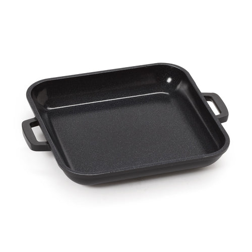 Heiss™ Mini Induction Grill Pan, 10 oz. (12 oz. rim full), 6" x 6" x 1"H, square, heat resistant to 500°F, oven/induction/gas/electric/open flame safe, dishwasher safe, chip and stain resistant, cast aluminum with ceramic enamel coating, black with black interior