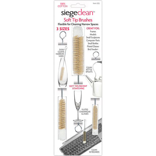 Siege Lambs Wool Soft-Tip Brush Set, includes: 3/8", 3/4", & 1" brush, flexible for cleaning curves & bends (set of 3)