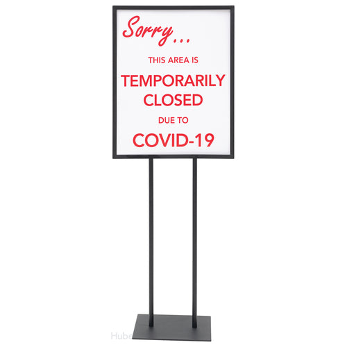 Sign, "this area is temporarily closed due to covid-19", 22"W x 1/16" x 28"H, styrene, red imprint/white background