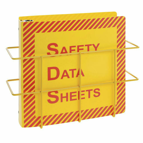 Right-To-Know Center, 14-1/4" x 4-3/4" x 12"H overall, includes 3" "Safety Data Sheets" binder & wire wall rack, holds 600 sheets, yellow, Hazard Communication Standard 29 CFR 1910.1200 & OSHA compliant