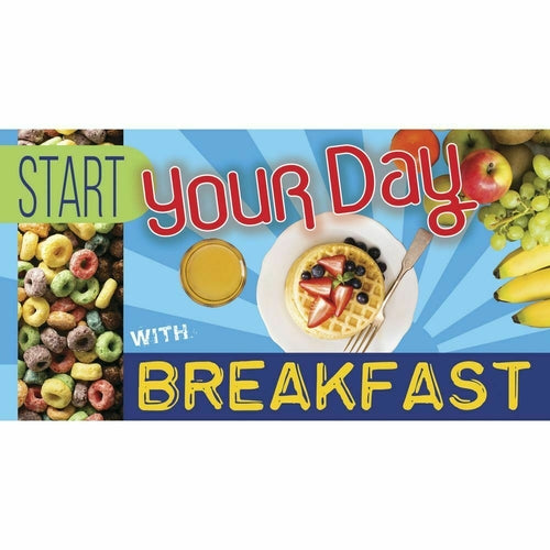 Magnetic Sign, "START Your Day WITH BREAKFAST", 49"L x 26"H, rectangular, horizontal, magnet/vinyl, blue (fits 76306 & 12231)