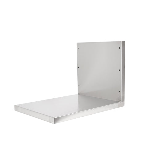Microwave Shelf, wall mount, 20"W x 26-9/16"D x 26-9/16"H, finished with 1-9/16" bends on all sides, reinforced with 1-1/2" square tube support brackets to mount to wall, 14/300 stainless steel construction (Available in Effingham)