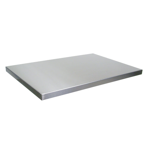 Countertop, 108"W x 42"D x 1-1/2" thick, 16/300 stainless steel with #4 polish, 1-3/8" thick premium particle board with melamine backing underlayment, NSF