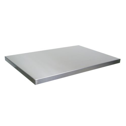Countertop, 48"W x 38"D x 1-1/2" thick, 16/300 stainless steel with #4 polish, 1-3/8" thick premium particle board with melamine backing underlayment, NSF