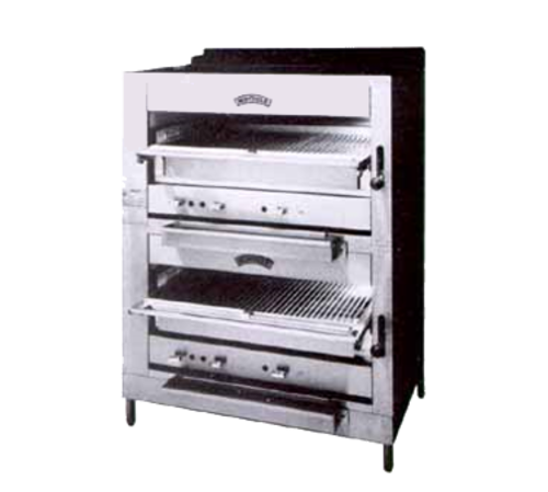 Legend™ Radiglo Broiler, 36", heavy duty, gas, double-deck infrared, adjustable broiler grids, with pressure regulators, 4" flue riser, stainless steel front, black sides & top, 6" adjustable stainless steel legs, 168,000 BTU, NSF, CSA Star, CSA Flame, CE