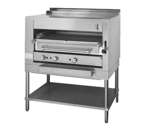 Legend™ Radiglo Broiler, 45" heavy-duty, gas, infrared deck type, adjustable broiler grid, 2" flue riser, stainless steel front & top, black sides, undershelf mounted on 25" stainless steel tubular legs, 126,000 BTU, ETL-Sanitation, NSF, CE
