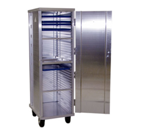 Lifetime Series Pan Rack, mobile, full height, enclosed cabinet, (38) 18" x 26" pan capacity, extrusions on 1-1/2" centers, all welded aluminum construction, front loading, reinforced door, HD base, (4) special 6"x2" K-urethane platform swivel casters, NSF, Made in USA