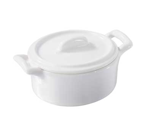 (BC0108) Mini Cocotte, (NOT US STOCK - 8-12 weeks lead time), 2-3/4 oz., 3" x 2-3/4" x 1-3/4"H, oval, with lid, handled, oven, microwave, freezer & dishwasher safe, glazed, porcelain, white, Belle Cuisine