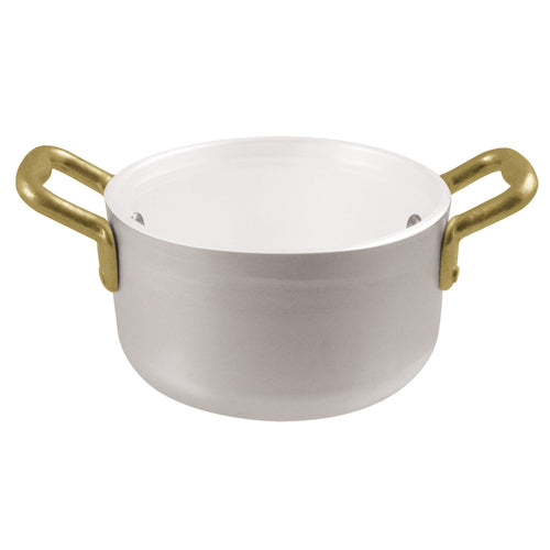 Mini Stew Pan, 16 oz. (approx.), 4" dia. x 2-1/4"H, round, aluminum with ceramic white non-stick coating, brass handles (hand wash recommended), Paderno, Mini Aluminum