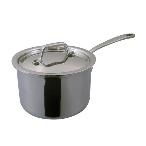 Mini Sauce Pan, 32 oz., 4-3/4" dia. x 3-1/8"H, without lid, induction ready, riveted handle, dishwasher safe, tri-ply stainless steel & aluminum, mirror polished finish, Paderno, Mini S/S Cookware